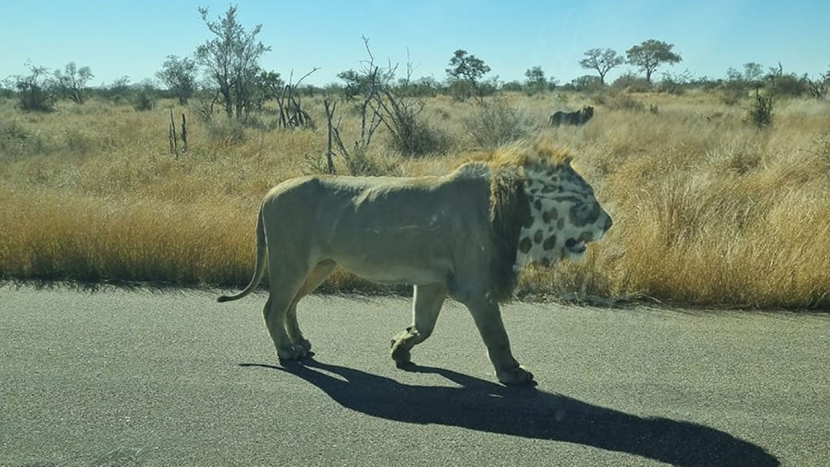 The pair were part of a group checking out the wildlife in South Africa's Kruger National Park when they came across three huge lions. Toelie attempted to film the animals but in her excitement, hit too many buttons on her phone causing it to freeze. Thankfully, Des, sitting next to her in the car, was a little more graceful and did get some pictures of the lion, but when she looked at the shots she was shocked to see that the lion actually had a leopard's face.